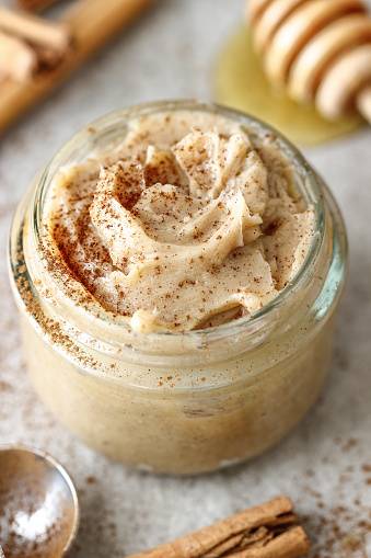 Reikės: 120 g saldžios grietinėlės sviesto, 1 šaukšto pieno, 2 šaukštų skysto medaus, žiupsnelio cinamono, 1/2 šaukštelio vanilės ekstrakto.