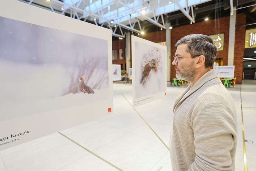 Šarka sniege. Tai – viena pirmųjų geresnių mano nuotraukų, fotografuota kokiais 2013 metais. Tada pakelėje radau partrenktą negyvą stirną, o būtent ji ir priviliojo tą šarką. Daug nuotykių bei įsimintinų kadrų turėjau ir fotografuodamas žiemą. Pamenu 2011-uosius, kai pusnyje fotografavau stirnas. Sniego buvo tiek, kad jis siekė šių gyvūnų nugaras. Fotografavau Nidoje, tokių pusnių nemačiau nuo vaikystės. Atsimenu, fotografuodamas bridau, šliaužiau, kad tik galėčiau įamžinti šiuos gyvūnus. Tai – žiemos žavesys, kurį dabar pristatau savo parodoje Kauno „Akropolyje“, visi norintys nuotraukas gali aplankyti nemokamai iki vasario 5 dienos. Parodoje dalinuosi keliasdešimt nuotraukų iš to, ką pavyko užfiksuoti per 12 metų lakstant po apsnigtą Lietuvą, besivoliojant pusnyse, šliaužiojant paskui stumbrus, bėgiojant paskui sniegenas ir gaudant snaiges.