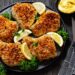 7. Nukelkite nuo grotelių žuvį ir padėkite ją ant didelės pjaustymo lentos arba serviravimo lėkštės. Patiekite su likusiais citrinų griežinėliais ir, jei norite, papuoškite petražolėmis ir baziliko lapeliais.
