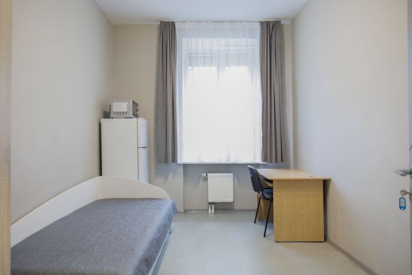 Tiesa, pokyčiai palietė ne tik gyvenamuosius kambarius, bet ir pirmąją erdvę, kur patenka į Vilniaus miesto krizių centrą atvykstančios šeimos – priėmimo ir darbo patalpą. Anksčiau labiau priminusi įprastą biurą, šiandien ši erdvė aiškiau atskirta į darbo ir pokalbių zonas. Patalpos centre esantis susitikimų stalas tapo neutraliu pokalbių tašku, padedančiu mažinti įtampą ir skatinti atviresnį bendravimą.